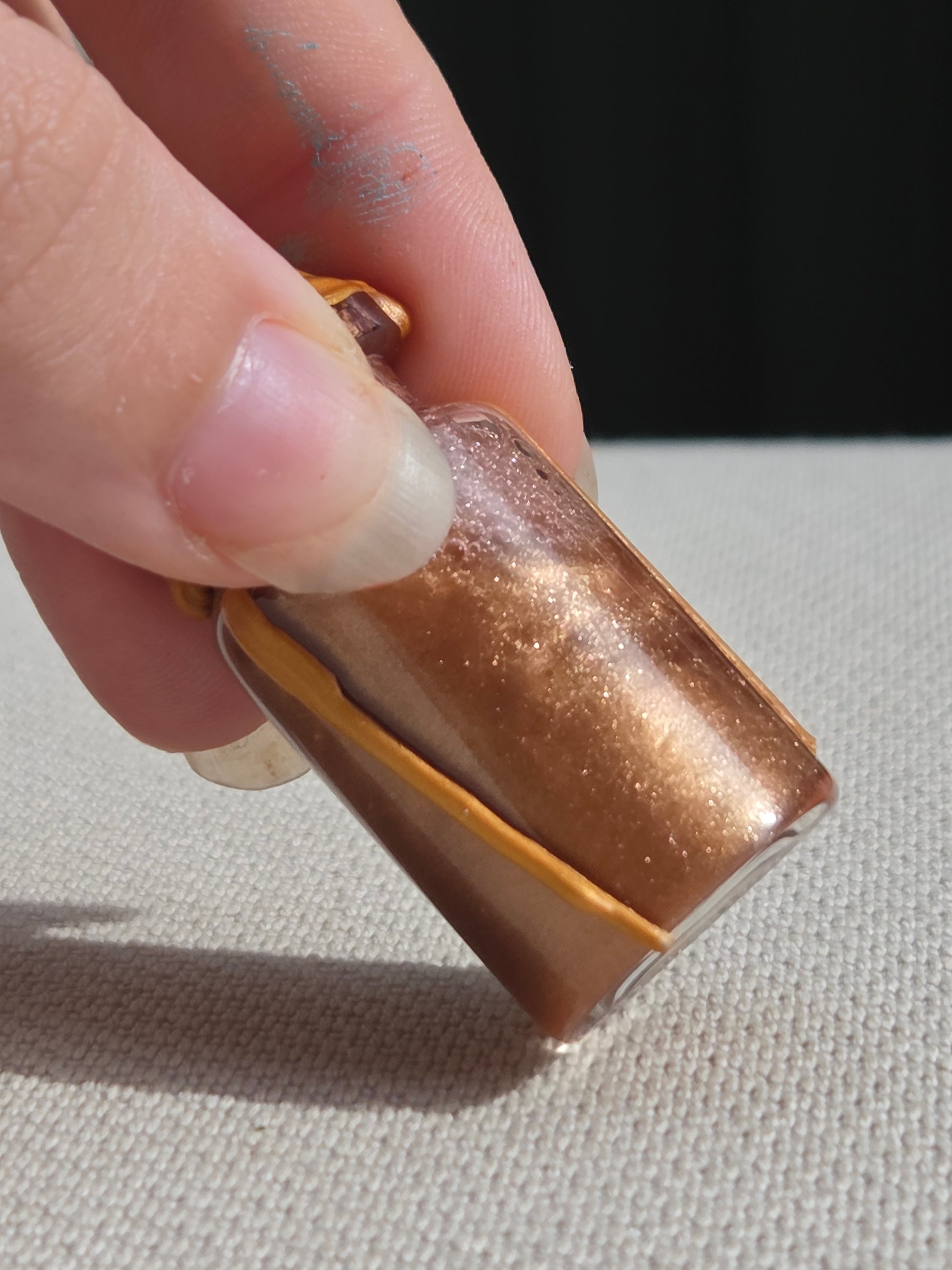 Each mini potion shakes up to match their corresponding catagory: Blue - Water, Green - Earth, Orange - Fire, White - Air