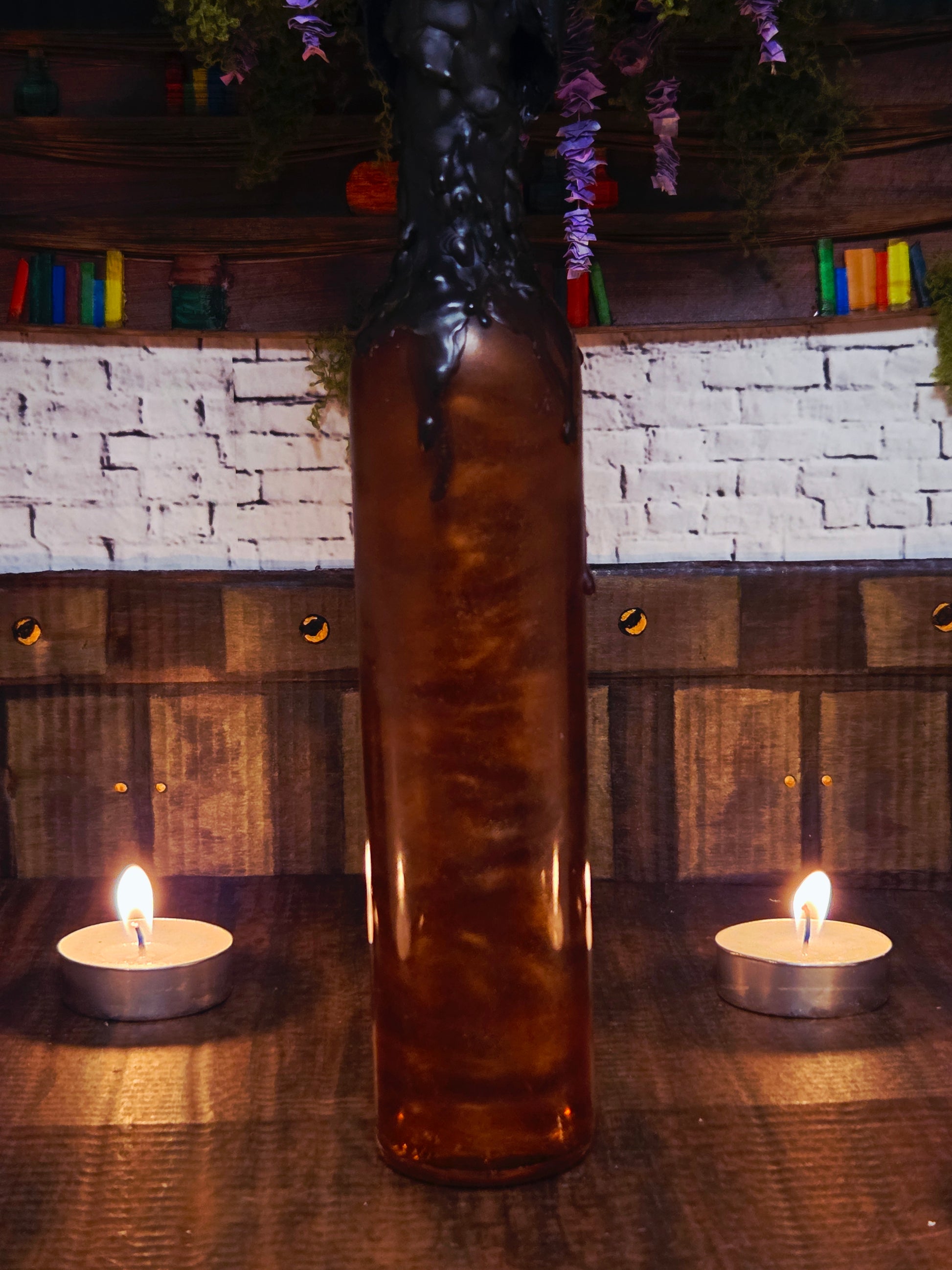 The potion swirls with an otherworldly shimmer. A viscous black liquid veined with ghostly wisps of copper light. When uncorked, a cold mist spills forth, whispering faint echoes of forgotten voices.